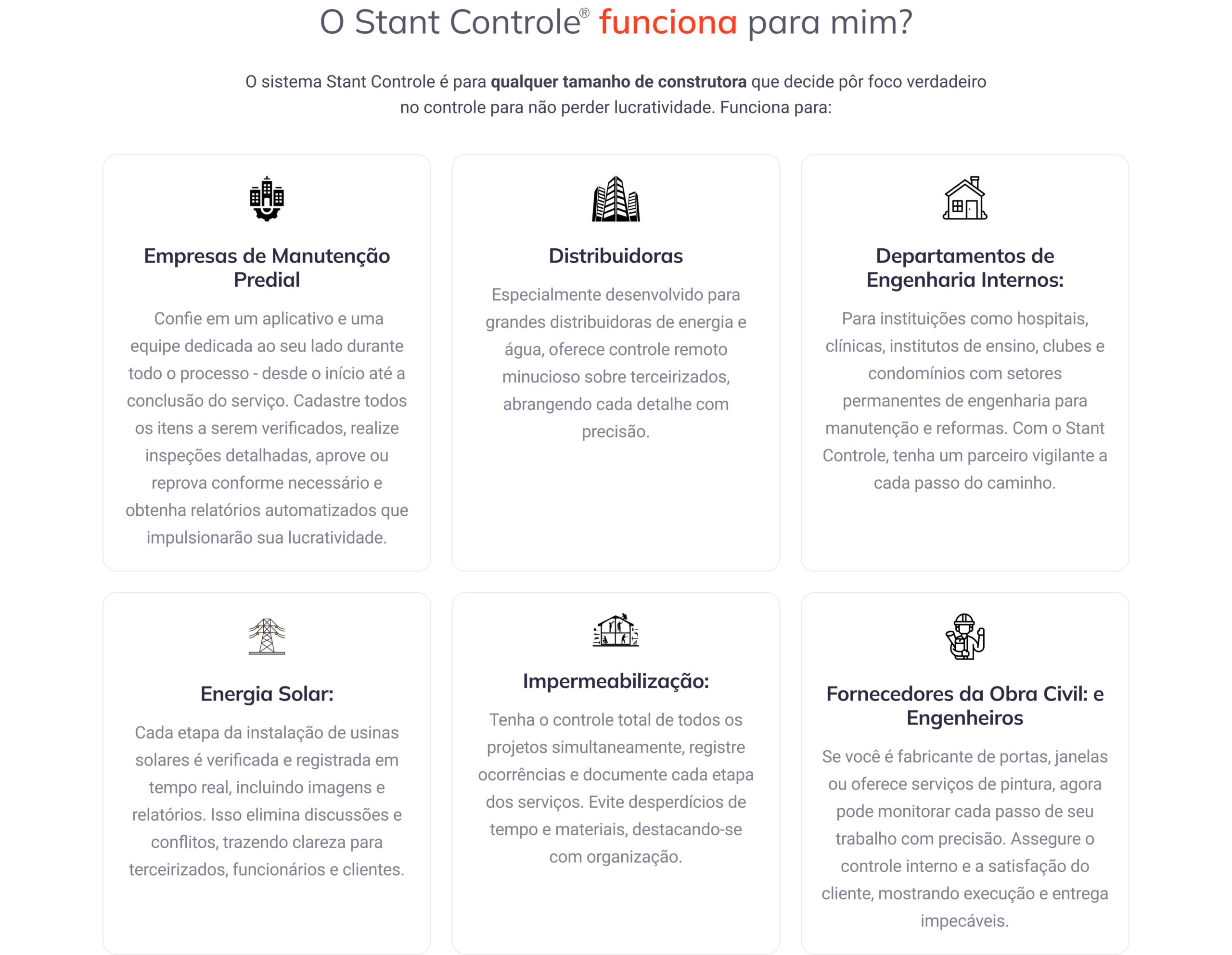O sistema Stant Controle é para qualquer tamanho de empresa que decide pôr foco verdadeiro no controle para não perder lucratividade. Funciona para: