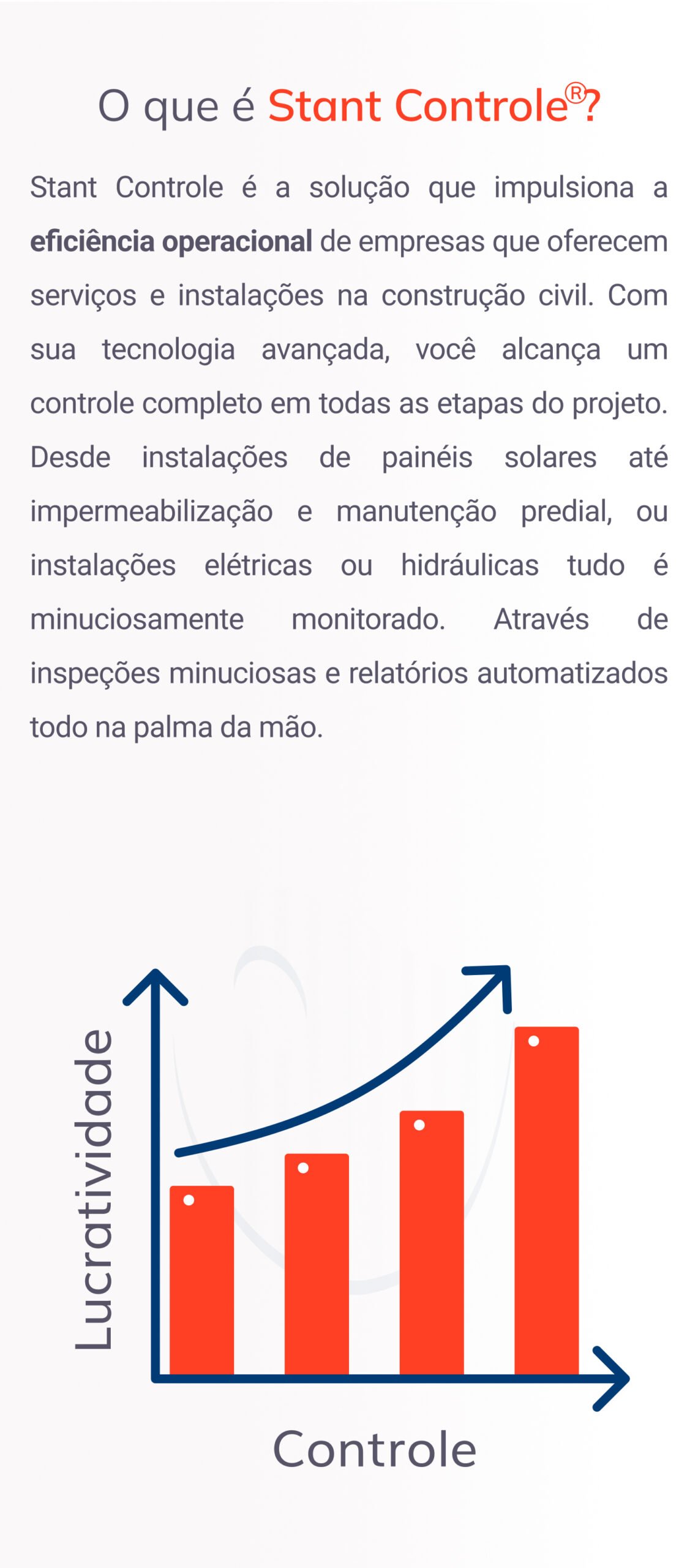 De início, o objetivo era padronizar os documentos de inspeção e a comunicação entre todos os envolvidos nas obras gerenciadas numa unidade da empresa que tem alguns grandes clientes, com mais de 600 obras simultâneas por mês. Com o Stant, houve uma redução significativa do tempo para elaboração dos relatórios de visitas e, dessa forma, o vistoriador ganhou mais disponibilidade para analisar os dados e focar em gerir mais obras.